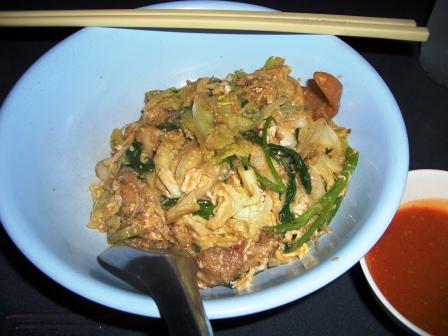 写真はラムカムヘン大学の食堂の某店のぶっかけ。