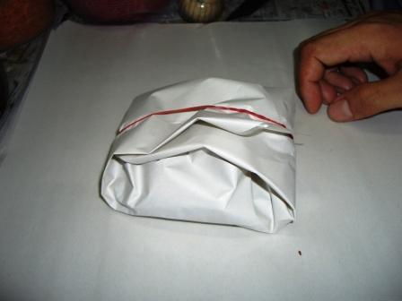 *屋台でパッタイを買って持ち帰りすると、紙の袋に包んでくれる。